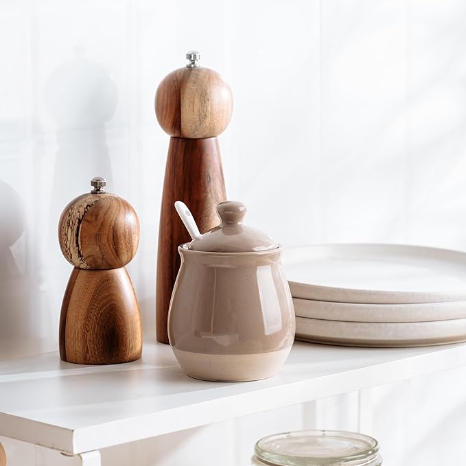 - Thoughtful Design: This sugar bowl comes with a snug-fitting lid and a handy mini spoon. The lid keeps sugar fresh and dust-free, while the spoon ensures precise portions without messy hands. Plus, the built-in spoon rest keeps everything tidy, and the wide-mouth design makes filling and scooping effortless.
