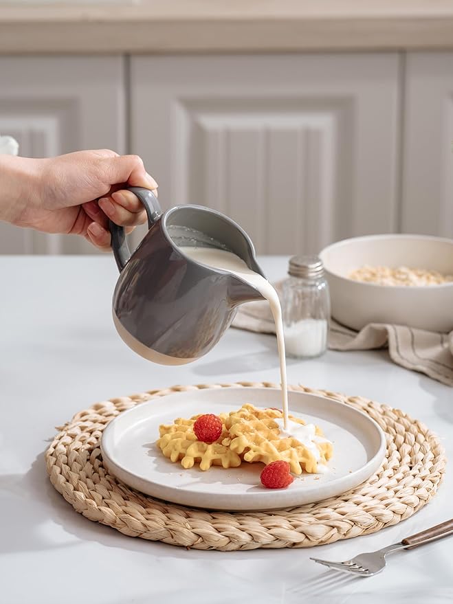 - DISHWASHER & MICROWAVE & Fridge SAFE: This 13-ounce pitcher is dishwasher and microwave-safe for easy cleaning and reheating. It’s also fridge-safe, making it perfect for storing milk, cream, or maple syrup at cool temperatures. Crafted for durability, they ensure consistent quality with every use