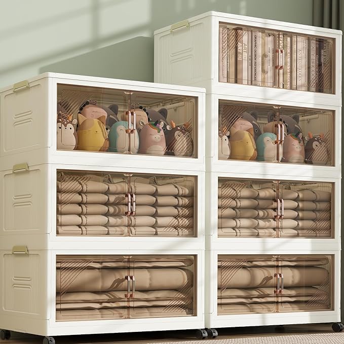 - 【Two Opening Ways】These collapsible storage bins offer two convenient ways to access your closet storage. You have the choice of lifting the top lid for storing bulky items or opening the front door for easy access to frequently used items. This dual-access design provides versatility and ensures that you can organize and retrieve your belongings efficiently according to your needs.