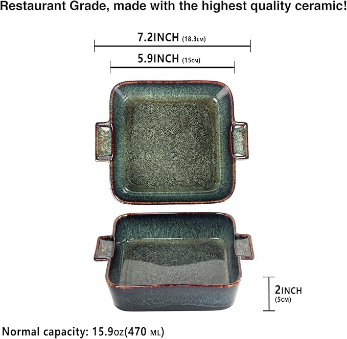 Ceramic Casserole Baking Dish - 16 Ounces Baking Dish for Oven, Lasagna Pans, Oven Safe Durable Bakeware for Kitchen Home Decor, Banquet and Dinner, Square 2 pieces 5.5 x 5.5 Inch