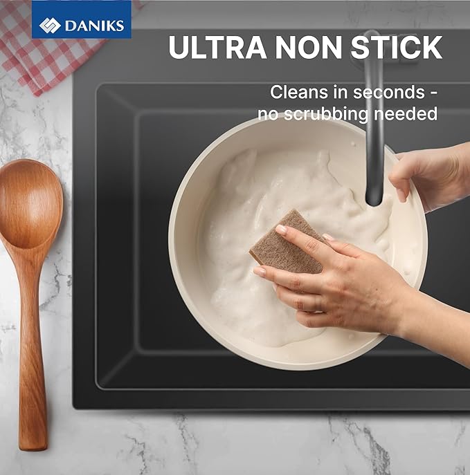 - 🌱【HIGH-QUALITY CERAMIC COATING】Our pots and pans feature a high-temperature-resistant ceramic coating, crafted without PFAS, PTFE, PFOA, lead, or cadmium, offering a safer cooking experience for your family.