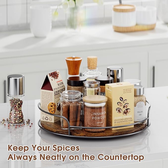 - Versatile & Stylish Storage Solution: This wooden Lazy Susan organizer is perfectly for kitchen, bathroom, or countertops and cabinets. Its elegant design brings both functionality and charm to any space, keeping your home tidy and stylish