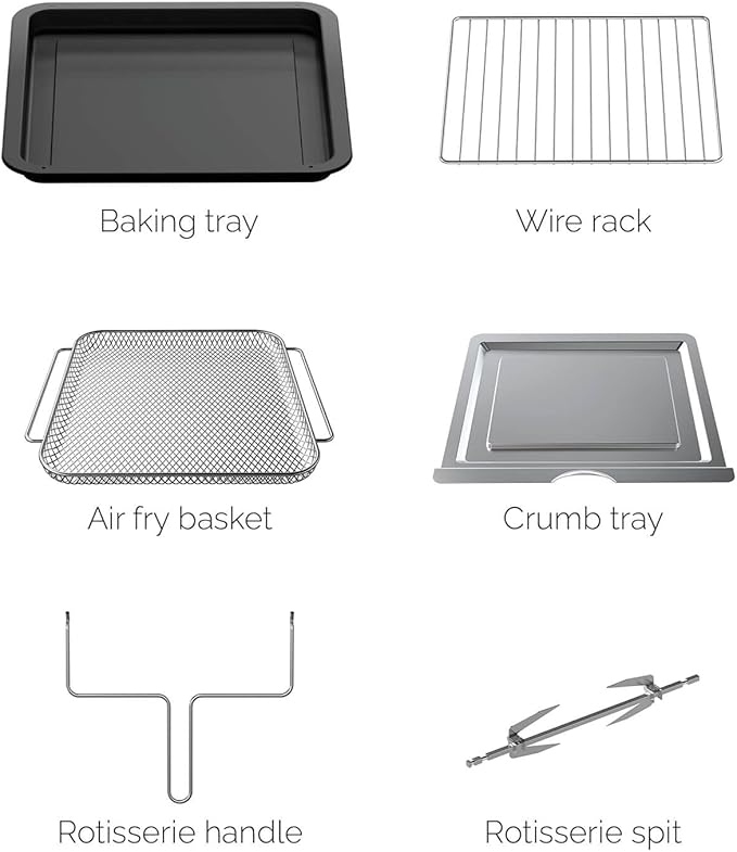 - ๐ฅ๐ข๐ง๐๐ฆ๐ฆ๐๐ฅ๐๐ & ๐๐๐๐ฌ๐๐ฅ๐๐ง๐: The included rotisserie set and dehydration feature offer even more versatility. Use this oven toaster air fryer combination to slow-roast meats or preserve snacks with up to 8 hours of low-temp drying. A standout among air fryer ovens countertop models.