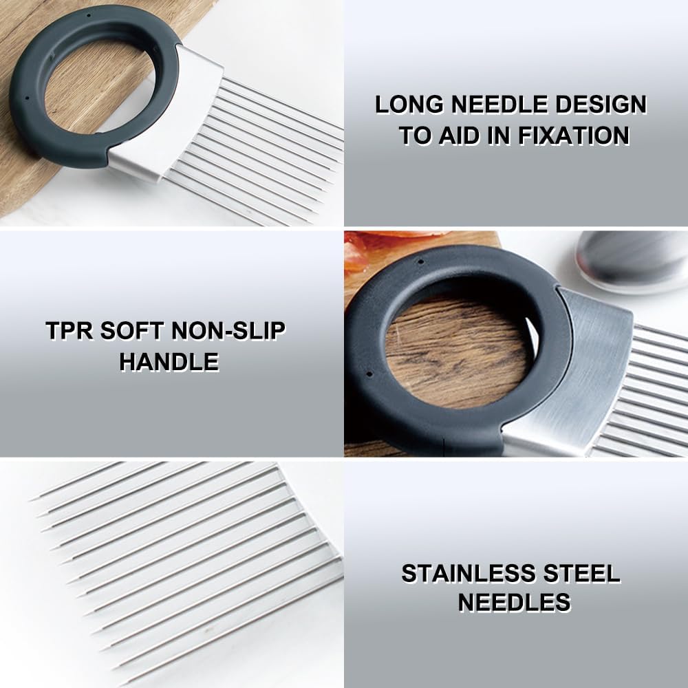 - ćUniform SlicingćWith an onion fork clip, it is easier to achieve even slicing or dicing of onions. This is especially important for cooking scenarios that require precise control of the size of ingredients, such as making salads and stir-frying, to ensure the consistency of ingredients and enhance the aesthetics and taste of dishes