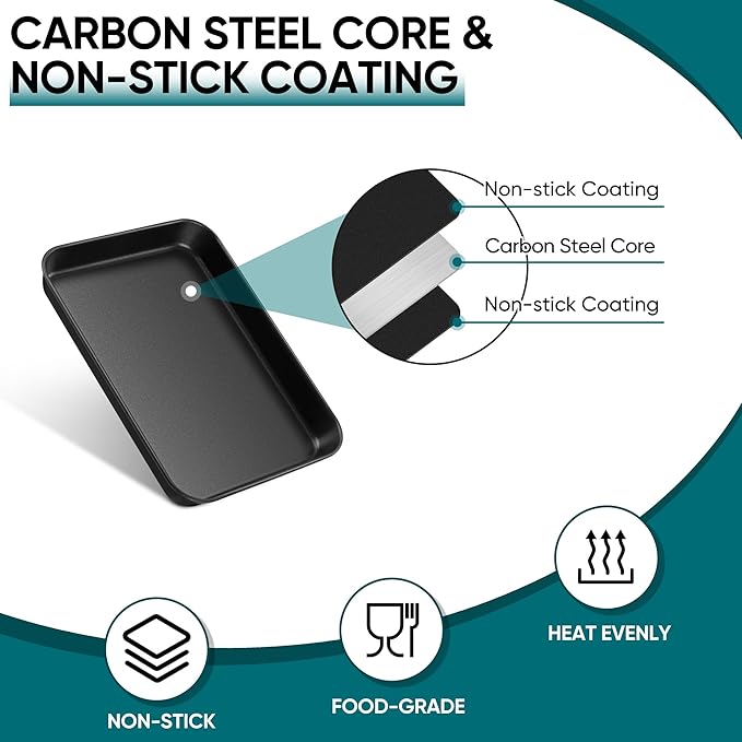- PREMIUM MATERIAL: Using high carbon steel core to replace traditional metal/aluminum core, With nontoxic nonstick coating double assurance better anti-rust and corrosion resistance, No need to worry about the release of toxic substances at high temperature, Healthy for daily baking use