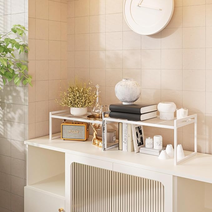 Set of 2 Kitchen Cabinet Organizer Shelf Stackable Sturdy Metal Counter Countertop Pantry Storage Rack