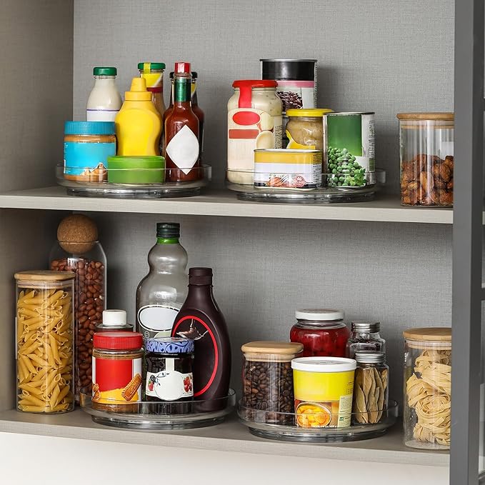- [ Please Note ] - The clear lazy susans are large enough for coke of 9 cans (refer to the 2rd image). Please read the lazy susan dimensions and measure your tabletop or closet space before ordering in case it doesn't fit.