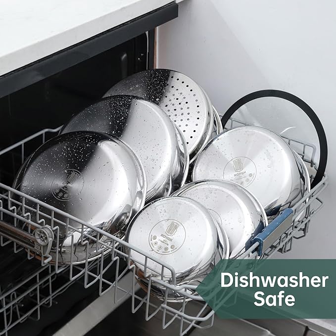 - Compatiable with all stovetop:it offer the ultimate in versatility in cooking when it comes to frying, sautéing, and simmering.You can use ROYDX cookware on any home cooktop or stovetop, including induction(Take off the handle when cooking),dishwasher-safe, and oven-safe up to 500°F).