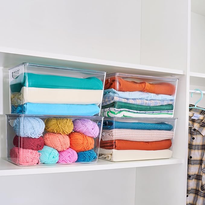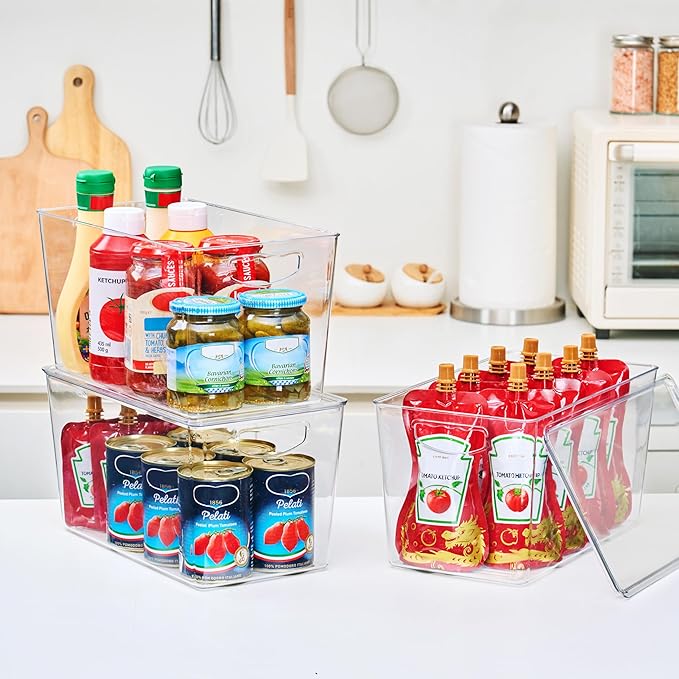 - Removable lid&Clear Design: Clear storage bin with a removable lid achieves stackability. It’s easily stacked regardless of the quantity to use vertical space. Maximizing space while looking great instead of having products lying all over the place or just sitting in the cabinet, restore the tidy and beauty of your home. Remove the lid or not to create the storage solution that works best for you, a great satisfaction for storage lovers. Space Saver Organizer!