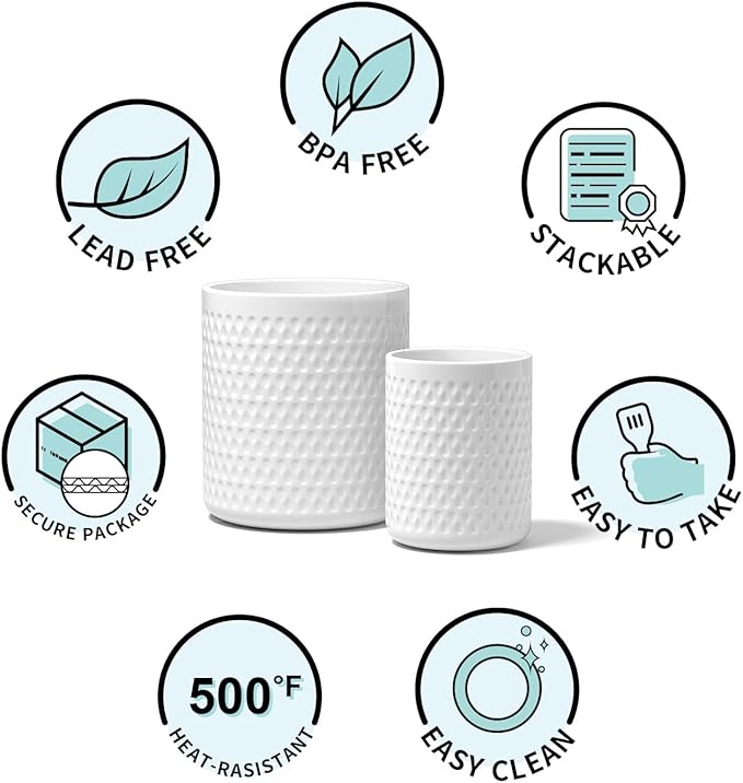 - 【Farmhouse Style Embossed Design】:This farmhouse-style porcelain cooking utensil holder set features a beautifully ribbed and fluted design with a crisp, modern finish that complements any kitchen decor. Heavy, well-made, and versatile, the kitchen tool holder is perfect for organizing utensils or displaying flowers, adding warmth, elegance, and a touch of class to your kitchen