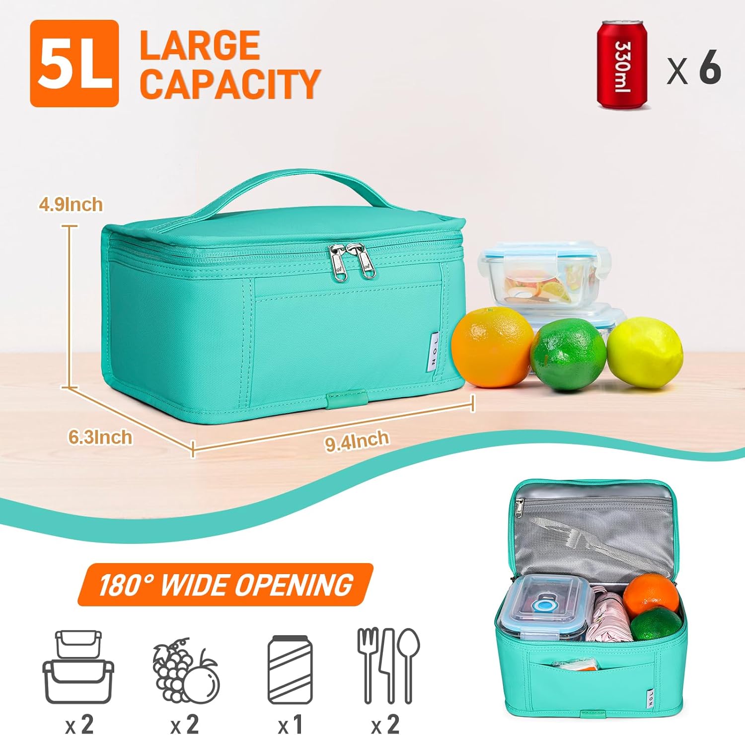 - Premium Material: NOL mini reusable lunch bag is made of the highly quailty 900D Polyester, the inner layer is PEVA material and the middle layer is specially filled with 5mm thick insulating lining, which provide great insulation to keep the food warm or fresh up to 3-4 hours.The double zippers of the thermal bag are made by NOL, very smooth and resistant.