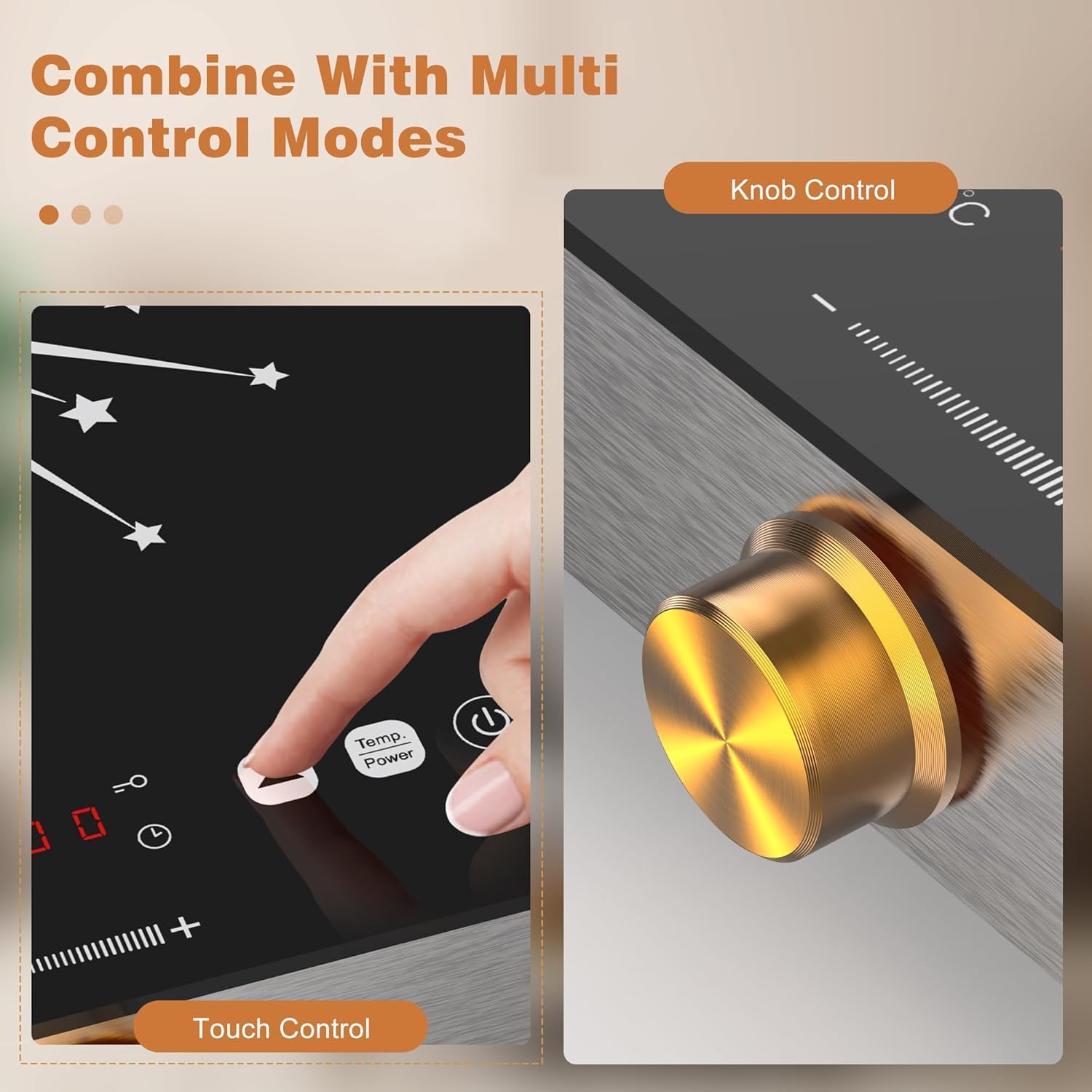 - 🍺| Intuitive Control Interface | Our 2 burners electric stove 24" is fitted with an LCD touchscreen and knob control, offering a seamless blend of modern technology and traditional ease of use. This dual control system allows for quick temperature adjustments and precise setting of cooking times, enhancing the overall cooking experience.
