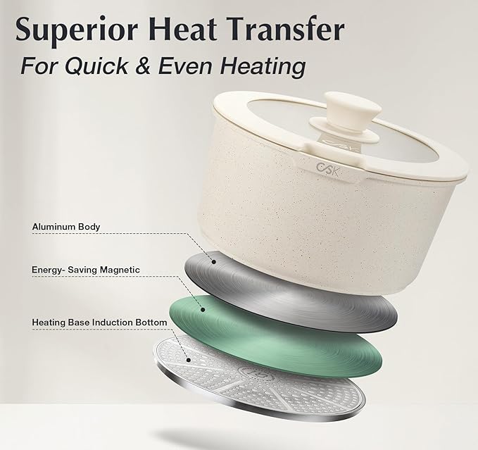 - Non-Toxic Nonstick Coating: The non-stick marble coating of KOCH SYSTEME CS cookware set is triple-layered for marble non-stick cooking, no PFAS, PTFE, PFOA, lead, or cadmium, so you can make every meal healthier.