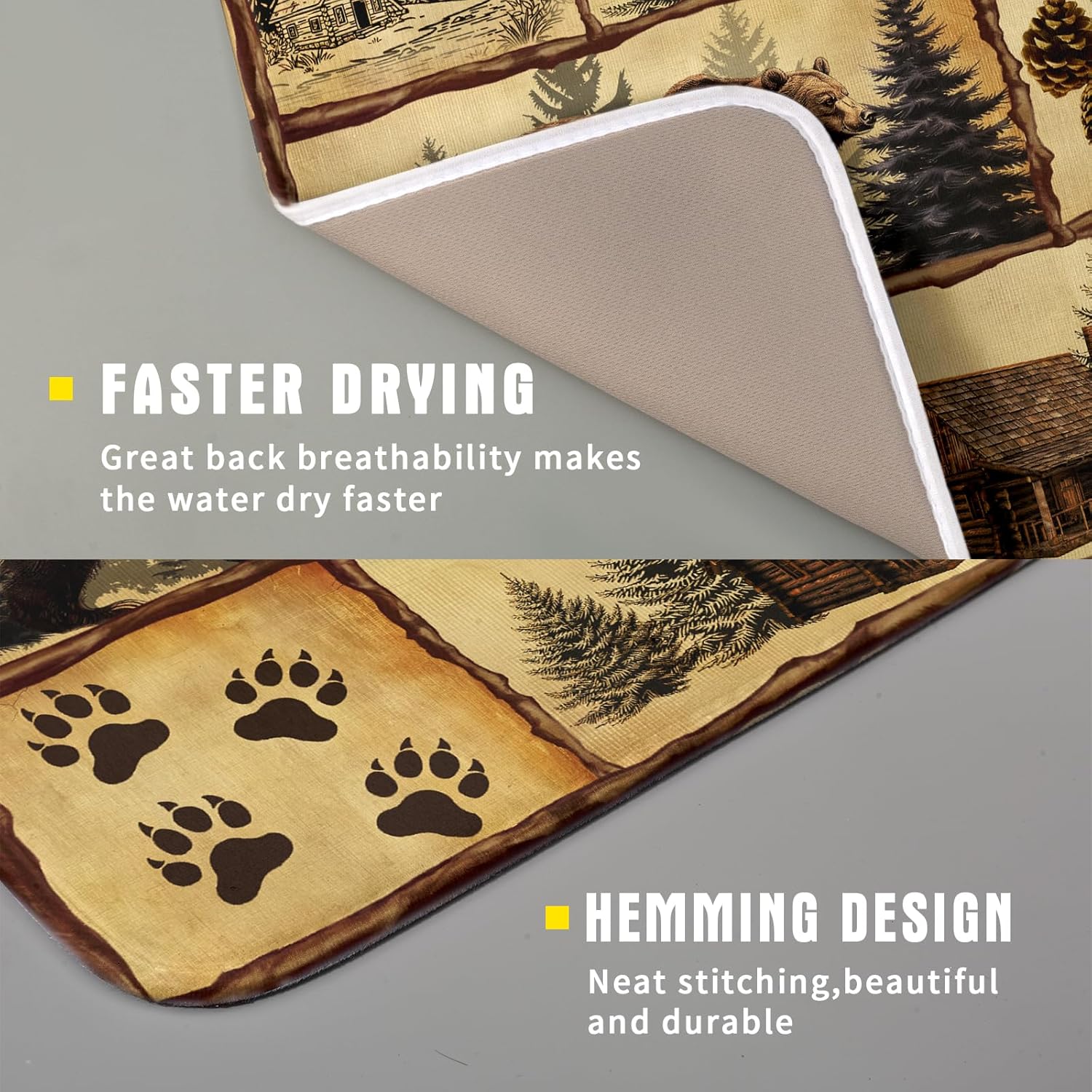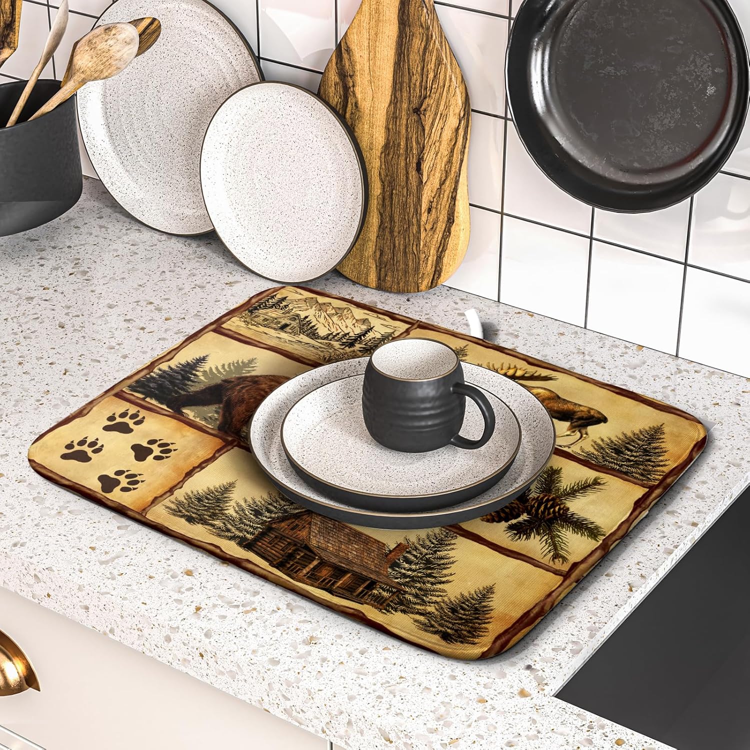 Vintage Bear Moose Dish Drying Mat 16x18 Inch Country Cabin Absorbent Dish Draining Mat Heat Resistant Drying Pad for Counter Sink Home