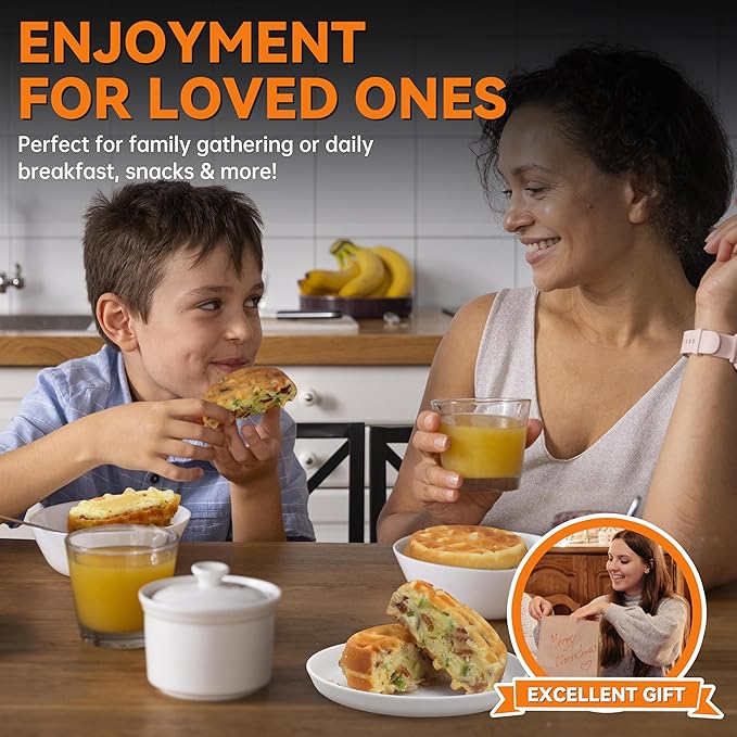 - [FUN-SIZED PORTIONS]: Experience a delightful twist on traditional breakfast with this waffle maker, crafting 4 round waffles, each measuring 4 inches in diameter and 1.2 inches in thickness. Perfect for individual servings tailored to smaller appetites or a delightful batch for shared brunches.