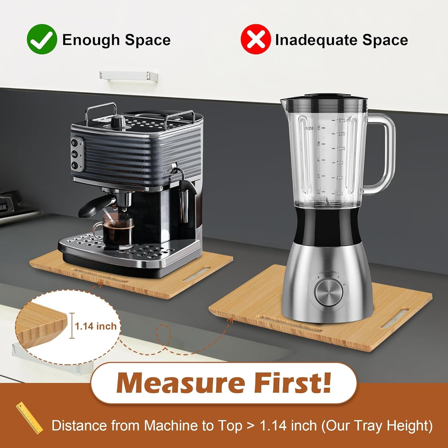 - Sturdy Sliding Coffee Tray: Crafted from high quality, thick bamboo, this sliding tray for coffee makers protects countertops with its smooth finish. Extra-strength crossing beams provide stable support for even heavy appliances, such as coffee makers and toasters