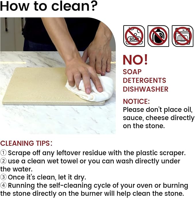 - GOLDEN THICKNESS(0.63") for this size, no extra unnecessary weight and would not require for long preheating time as the thicker ones. And with our included wooden pizza peel and oven mitts, you'll have everything you need to safely and easily transfer your pizzas to and from the stone.