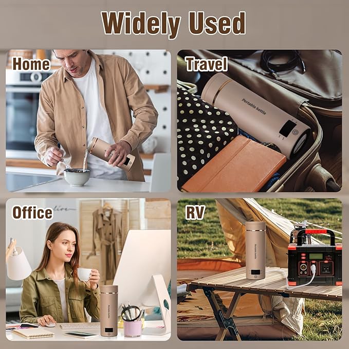 - 4 Smart Temperature Presets: Portable electric kettle has 4 preset temperatures (212-176-131-113°F), through the LCD screen of the cup body to display the temperature easily switched. Travel water boiler can brew coffee, different kinds of tea, milk , ect. Small kettle is not only a electric kettle, but also a water cup, can greatly improve the happiness of life.