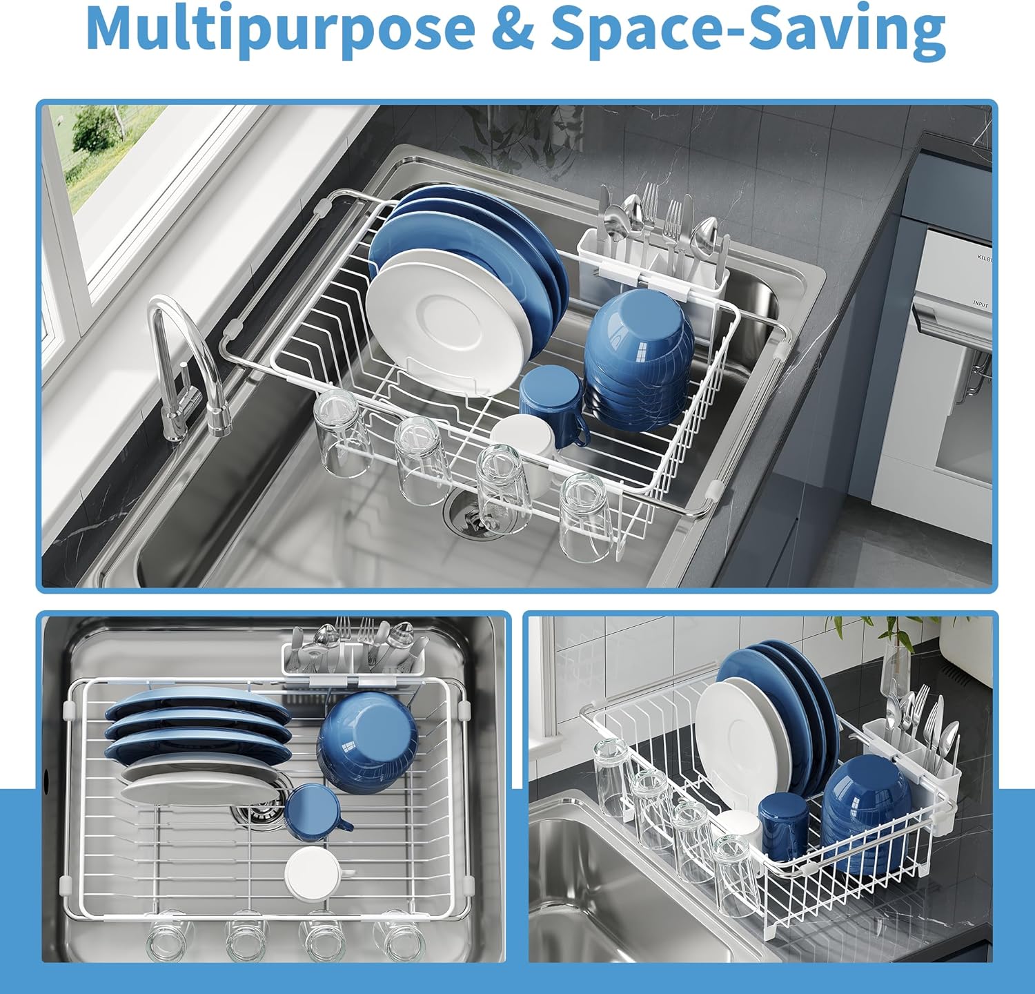 - Adjustable Supporting Bars: The supporting bars of the sink drying rack can be extended from 15.5" to 23.2", This dish rack is a great space saver that fits over most sinks. (NOTE: Please check if the size of your sink and the dish rack match before purchasing.)