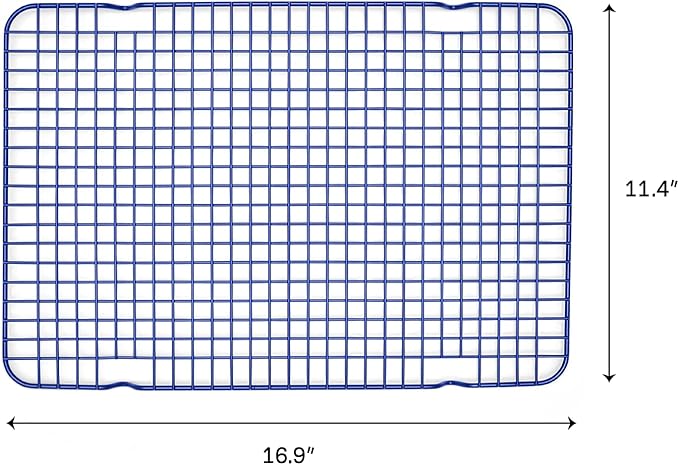 - [ DUAL-LAYER NONSTICK MAGIC ] Our reinforced, PFOA/PFAS/PTFE-free coating lets gooey cheese or sugary glaze lift cleanly—no more chiseling off caramel! Quick swipes make cleanup a breeze, so your cookie cooling rack is always ready for the next batch.