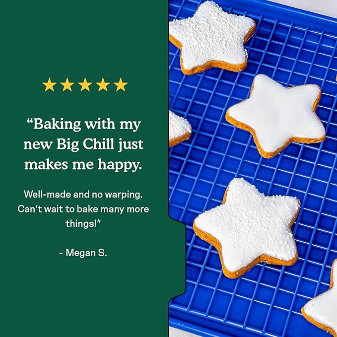 - [ HALF-SHEET PERFECT FIT ] Measuring 16.25" × 11.25", Big Chill nests snugly inside Great Jones’ Holy Sheet or any standard half-size pan.Instantly convert bakeware into a multi-tasking wire rack for crisping, cooling, and glazing.