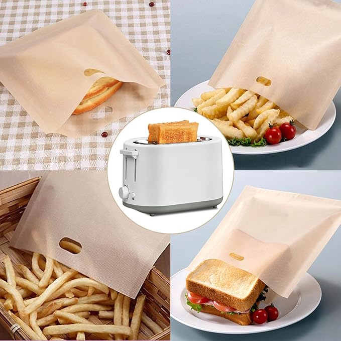 - Reusable Toaster Bags: The Teflon coating inside and outside the toaster sandwich bags ensures the non-stick properties of the toaster bags, so grilled cheese bags are very easy to clean. Reusable toaster bags can be cleaned in warm soapy water or in the dishwasher