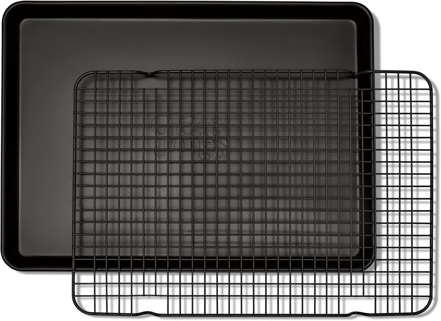 - [ DUAL-LAYER NONSTICK MAGIC ] Our reinforced, PFOA/PFAS/PTFE-free coating lets gooey cheese or sugary glaze lift cleanly—no more chiseling off caramel! Quick swipes make cleanup a breeze, so your cookie cooling rack is always ready for the next batch.