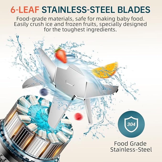 - Multi-use Professional Kitchen Blender: The smoothie blender is equipped with 56 oz Glass Jar and 16 oz Travel Cup.Professional blender features an enhanced food-grade 6-leaf sharp blade specifically engineered for effortless ice crushing, making it an ideal choice for creating smoothies and frozen drinks.
