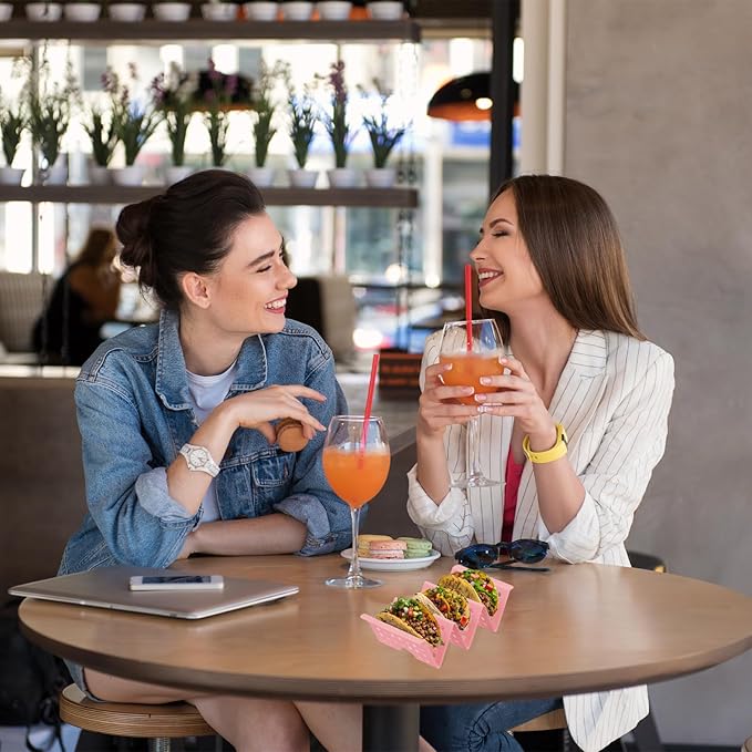 uxcell 8 Pcs Taco Holder Stand, Plastic Taco Plates Hold Up to 3 Tacos, Hollow Carved Taco Shell Holder, Dishwasher Microwave Safe, Pink