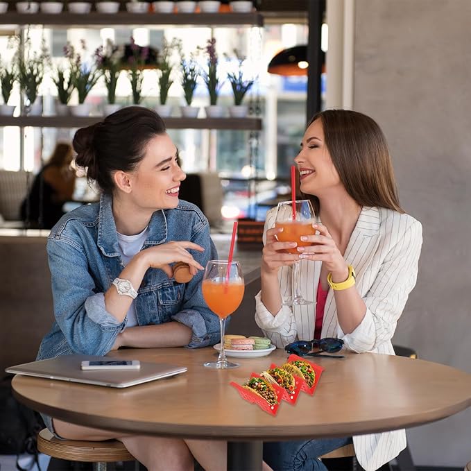 uxcell 8 Pcs Taco Holder Stand, Plastic Taco Plates Hold Up to 3 Tacos, Hollow Carved Taco Shell Holder, Dishwasher Microwave Safe, Red