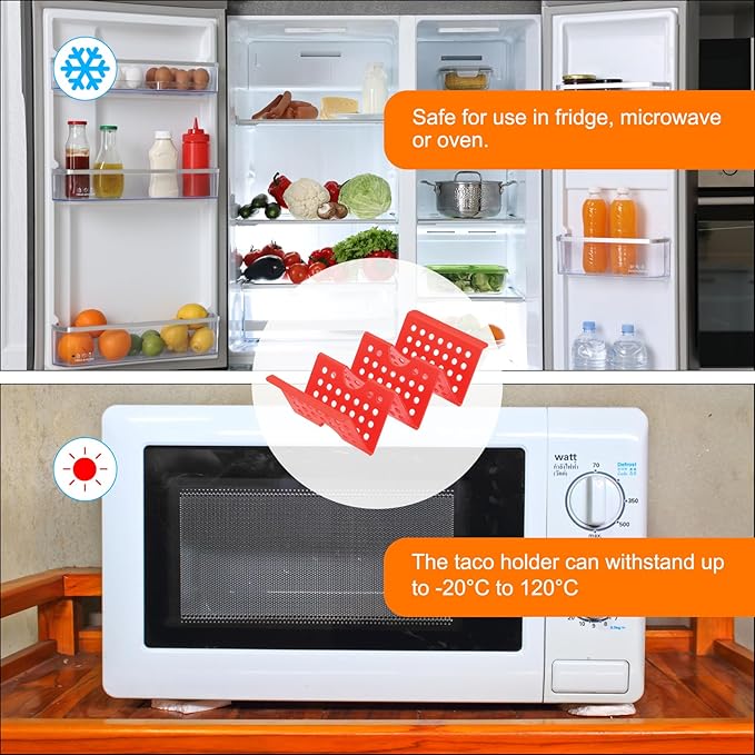 - [Easy To Clean] - Taco holder is easy to wash and available in the dishwasher and microwave. The taco tray can be stacked together after washing.