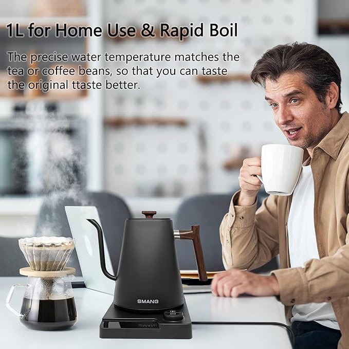 Electric Kettles, Gooseneck Electric Kettle, ±1℉ Temperature Control, for Pour Over Coffee and Tea, 304 Stainless Steel Inner, BPA-Free, Quick Heating Electric Kettles for Boiling Water, 1L Black