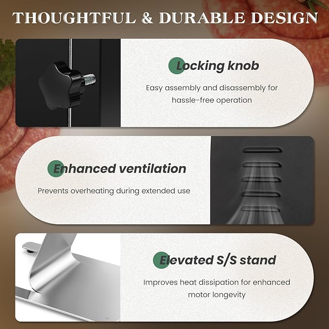 - [Thoughtful design] 1. The grinding head locks with a knob, making assembly and disassembly quick and hassle-free. 2. Ventilation ports prevent overheating, even during extended use. 3. Its unique stainless steel elevated stand raises the motor for improved airflow and enhanced heat dissipation