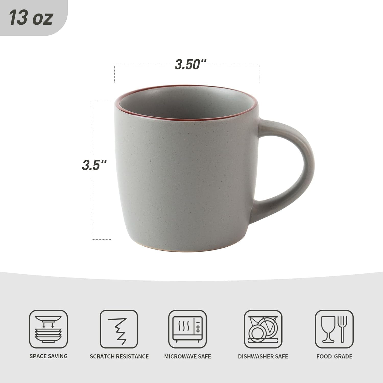 famiware Mercury Coffee Mugs 13 oz, Coffee Mugs Set of 6 with Handle, Cups for Latte, Hot Tea, Cappuccino, Mocha, Cocoa, Dark Grey