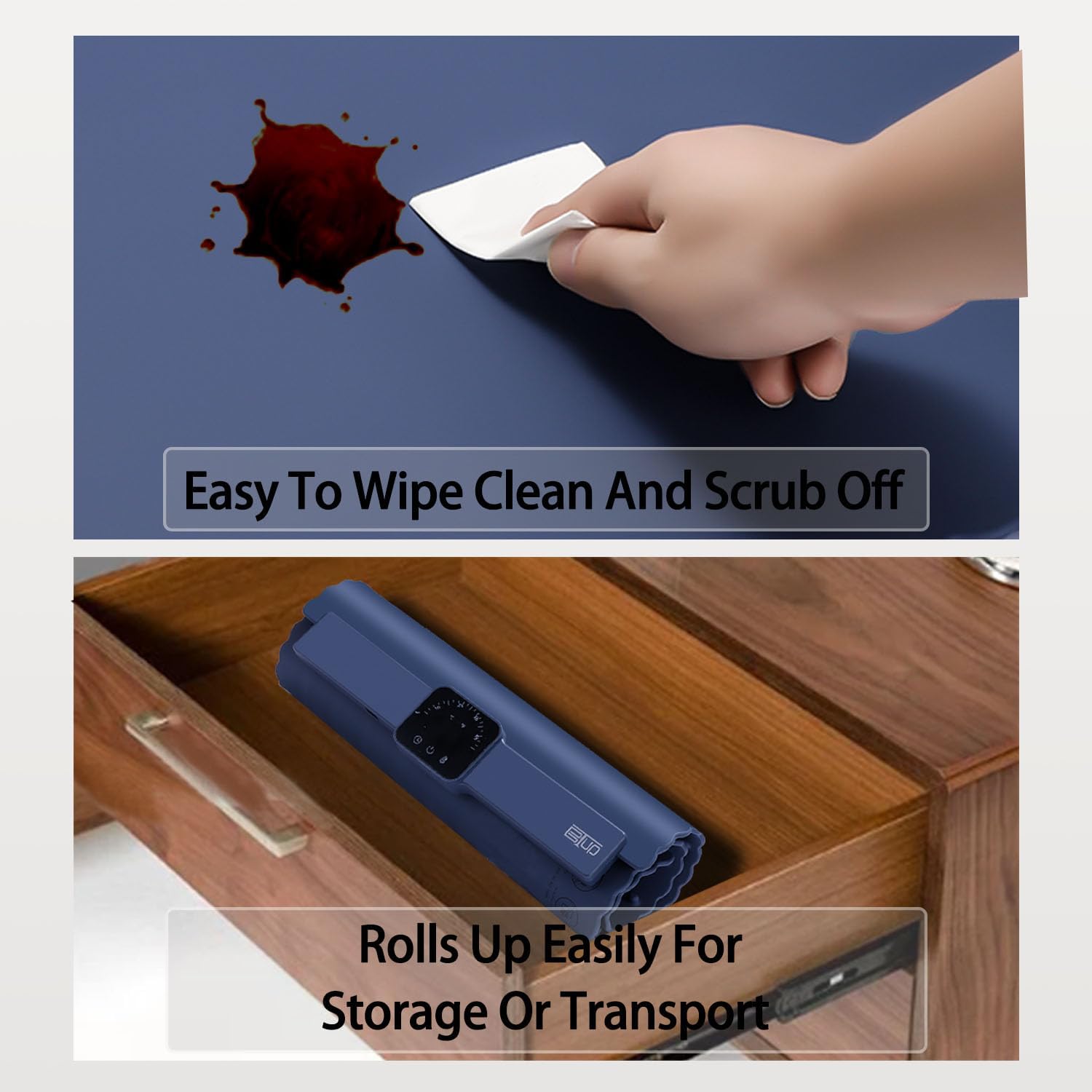 - đź’—Rollable For Easy Storage & Easy to Clean Surface: Measuring 26"L x 15.35"W x 0.83"H , BTUP Electric Warming tray Features a Smart Foldable Roll Up Design that Ensures Easy Storage &Space-Saving, Premium Silicone Nano Material Featuring Splash-proof and Stain-Resistant or Oil Resistance Properties.