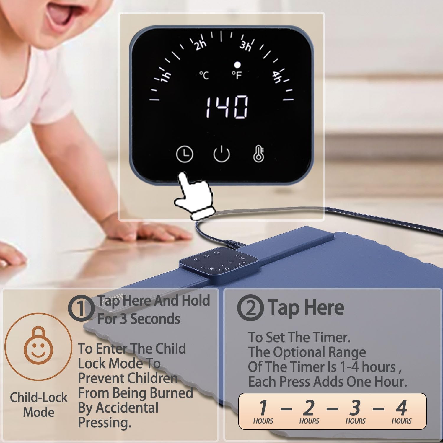 - đź’—4-Timer Settings: 1h-2h-3h-4h. In Addition Child Lock To Prevent Children From Accidentally Touching and Ensures That The Unit Operates Safely Around Children
