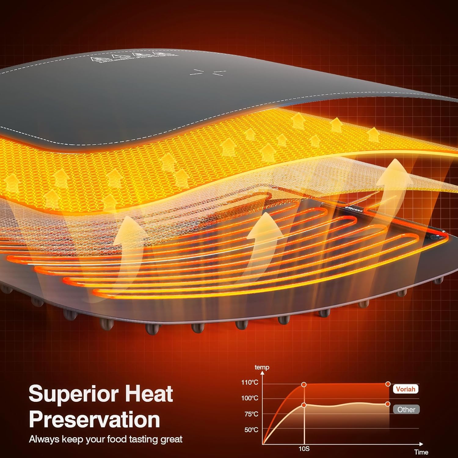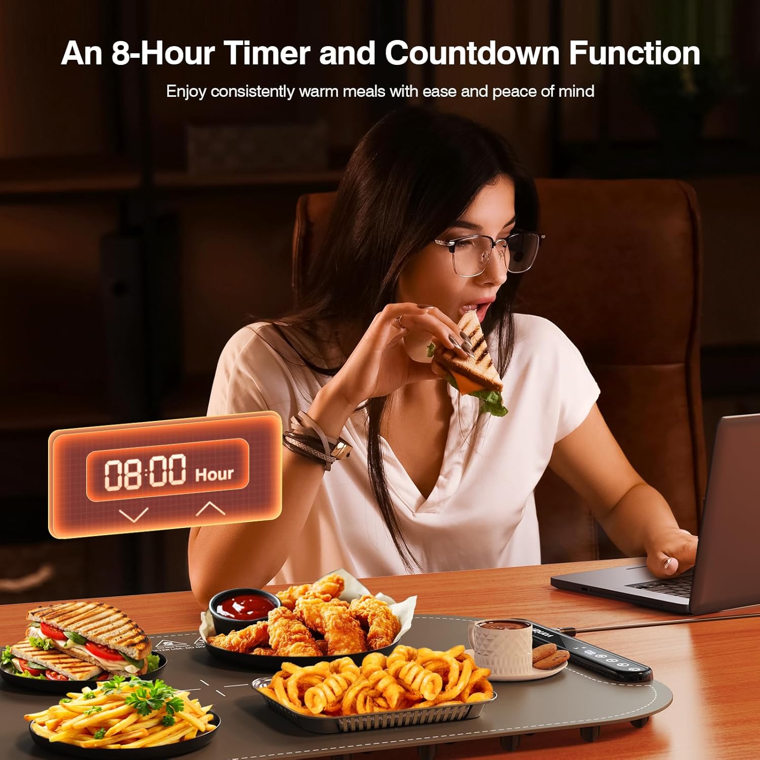 - 【Adjustable Temperature Control】This electric food warming mat offers 8 temperature levels (40°C–110°C) to keep your meals warm and ready—perfect for family dinners, parties, and office events.