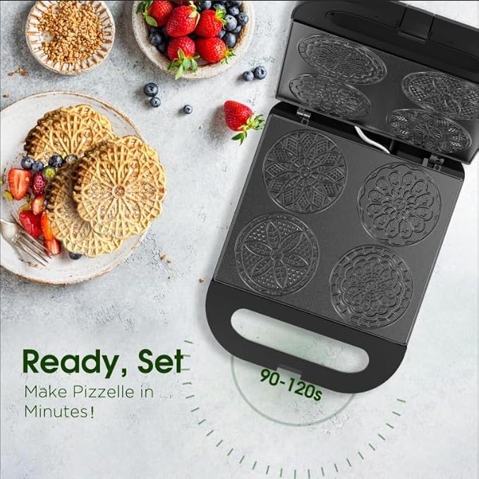 - 🌟【Perfect 4-Inch Cookies in Minutes】Create 4 perfect 4-inch pizzelles at a time in just 90-120 seconds, ideal for quick and delicious treats.