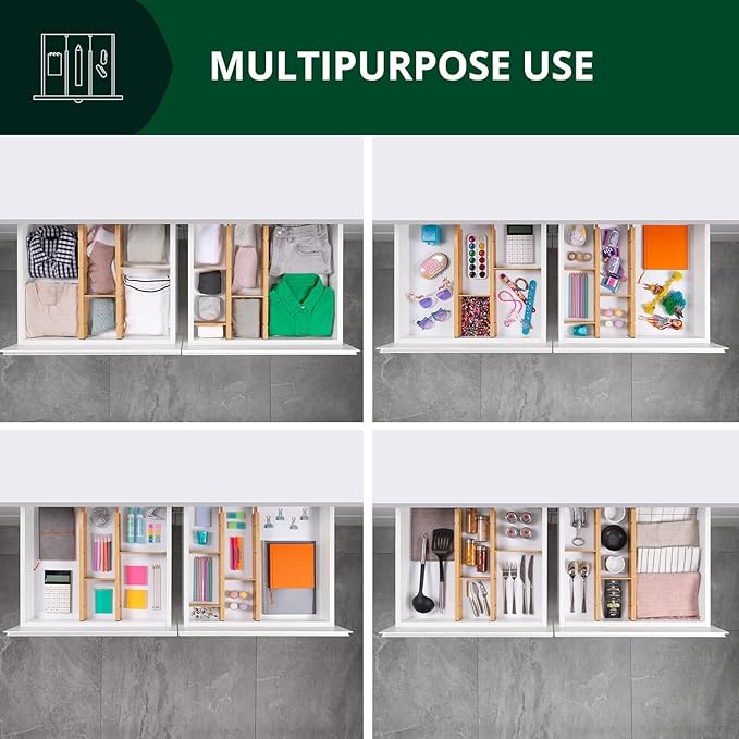 - ๐ ๐ถ๐น๐ฎ๐จ๐ต๐ฐ๐๐จ๐ป๐ฐ๐ถ๐ต ๐จ๐ป ๐ฐ๐ปโ๐บ ๐ญ๐ฐ๐ต๐ฌ๐บ๐ป: Getting your home in order should never be at the expense of your drawers! Thatโs why our bamboo drawer dividers come with a built-in eva foam padding on the ends to keep them sturdily in place. This prevents our drawer dividers organizer set from scratching up your drawers and creating any damage. Most convenient in the kitchen as drawer dividers for large utensils such as ladles, spatulas, and more