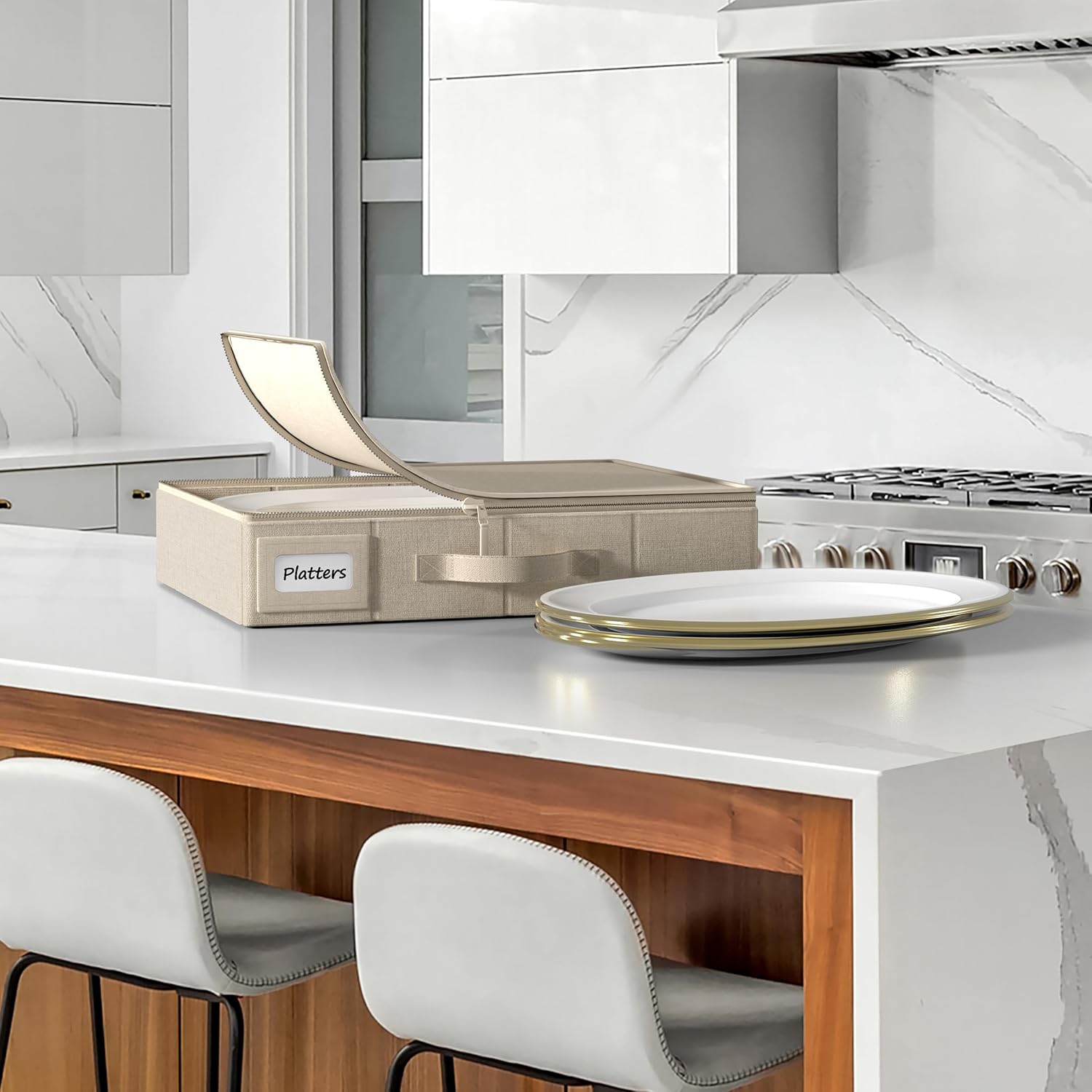 - Efficient Organization: Utilize the platter storage containers to keep your delicate dishware neatly arranged, preventing scratches and chips - Perfect for home cabinets or attic storage, our platter storage case features a thick hard shell cover, ensuring your dinnerware stays secure when not in use