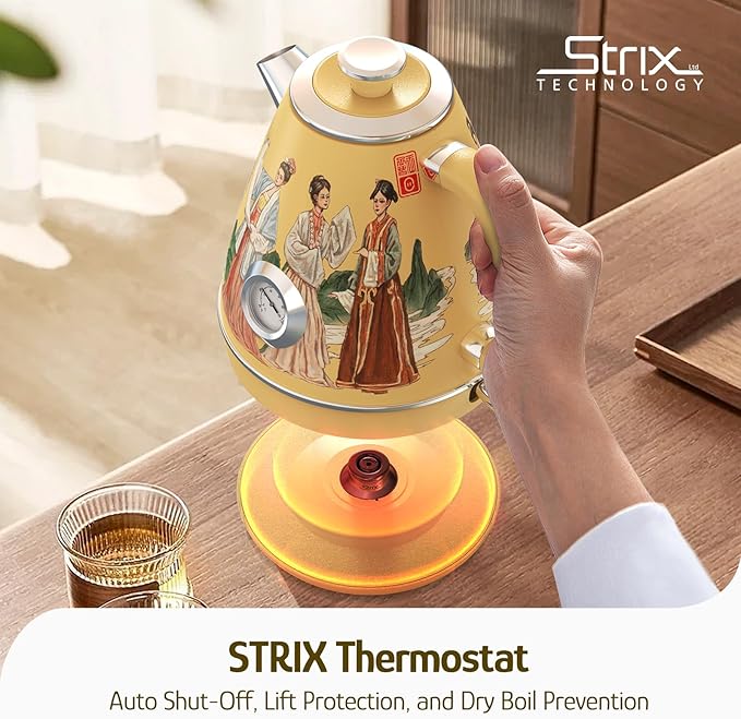 - Triple Security Guarantee: STRIX thermostat technology provides triple security for your use. Including 1-Auto shut-off when water begins to boil; 2-Auto shut-off when the kettle body is lifted from the base; 3-Prevent the kettle from turning on with no water inside.