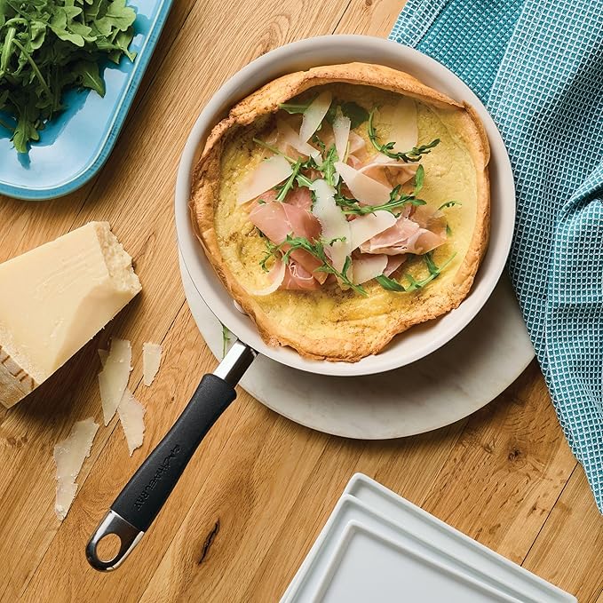 Rachael Ray Cucina Ceramic Nonstick Frying Pan/Skillet, 8.5 Inch Non Stick Open Fry Pan, Dishwasher Safe - Peppercorn