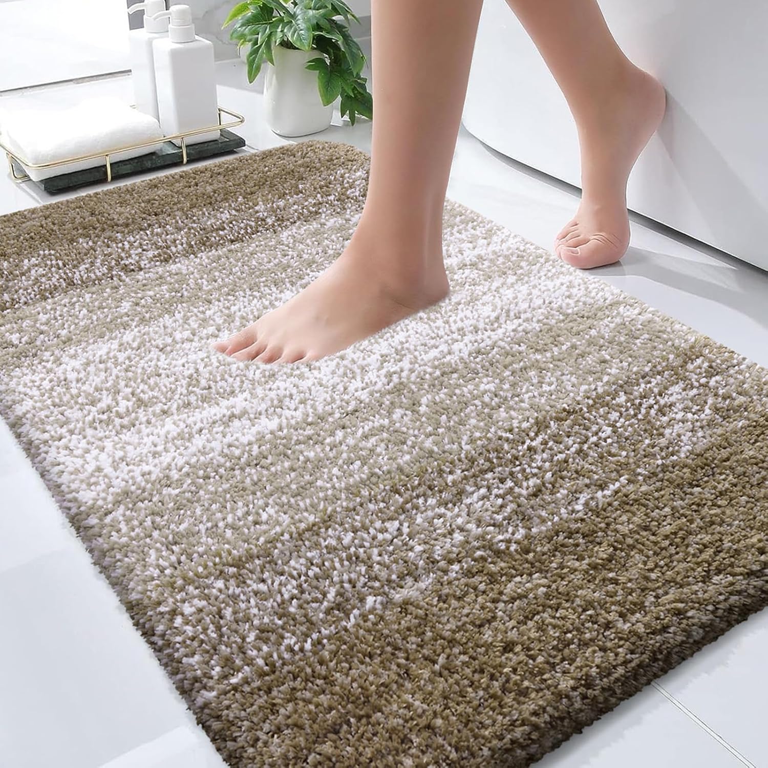 - [Ultra-Absorbent and Quick-Drying] Our bath mat features a soft shaggy microfiber fabric that absorbs water as you step out of the bath, shower, or while getting ready by the sink. The mat's deep pile efficiently traps moisture, allowing it to dry quickly and keep your rug clean and dry.