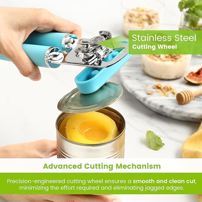 Spring Chef Stainless Steel Can Opener - Manual with Soft Grip Handles, Easy Turn, Heavy Duty Hand Can Openers for Seniors with Smooth Edge - Magnetic Lid Remover - Aqua Sky