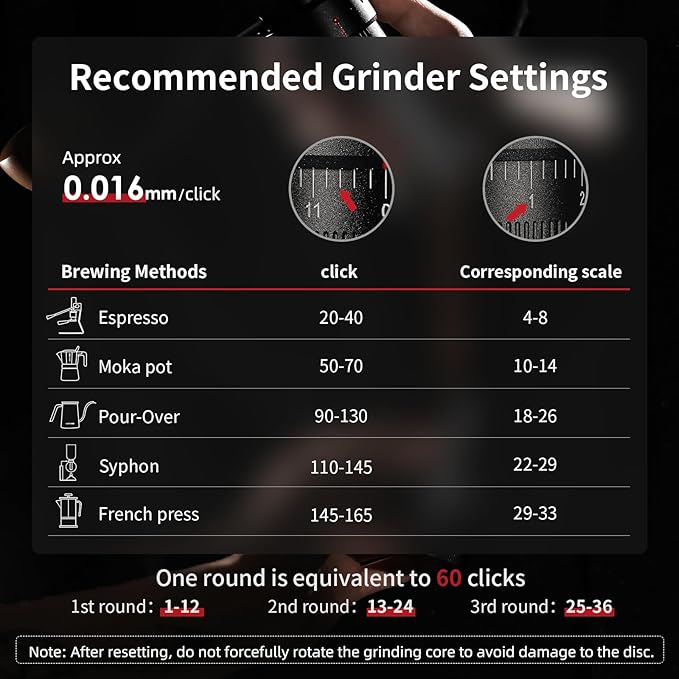 - 【Enhanced External Adjustment】Our hand coffee grinder features an intuitive external adjustment design, making it more convenient than internal adjustments. The external adjustment structure has 60 clicks a week, with a maximum of 180 clicks, even beginners can easily customize their coffee experience. Enjoy the versatility of multiple grind options, catering to espresso, mocha pot, drip coffee, siphon pot, French press, and more.