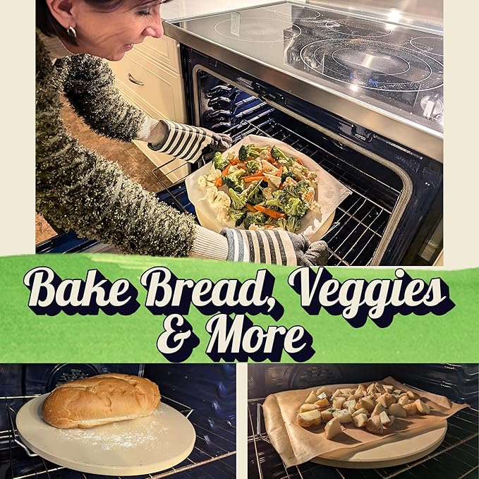- EASY TO USE & VERSATILE: Beyond just pizza, our outdoor pizza oven stone offers endless possibilities. Use it as nonstick sourdough bread baking stone, biscuits, cookies, veggies, and more. Can use as a stone cookie sheet, bread stone, grill stone and more.