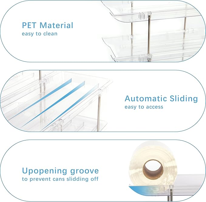 - Space-Saving & High-Capacity – Each ultra-slim 4.15-inch layer holds up to 36 cans, doubling storage density while maintaining compact efficiency.