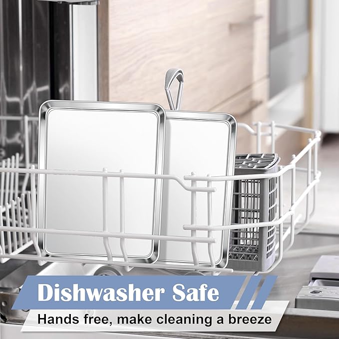 E-far Stainless Steel Baking Sheet, 12.4” x9.7” Baking Cookie Sheet Pan for Oven, Non-toxic Metal Toaster Oven Tray for Cake Cookie, Healthy & Rust Free, Mirror Finish & Dishwasher Safe, 1 Pack