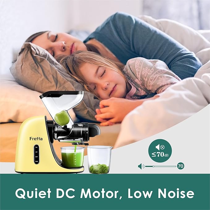 - 【Efficient and Quiet 200W Motor】The Fretta juicer is equipped with a powerful 200-watt DC noise-reduced motor, providing strong and efficient performance for faster juicing while keeping noise levels to a minimum.