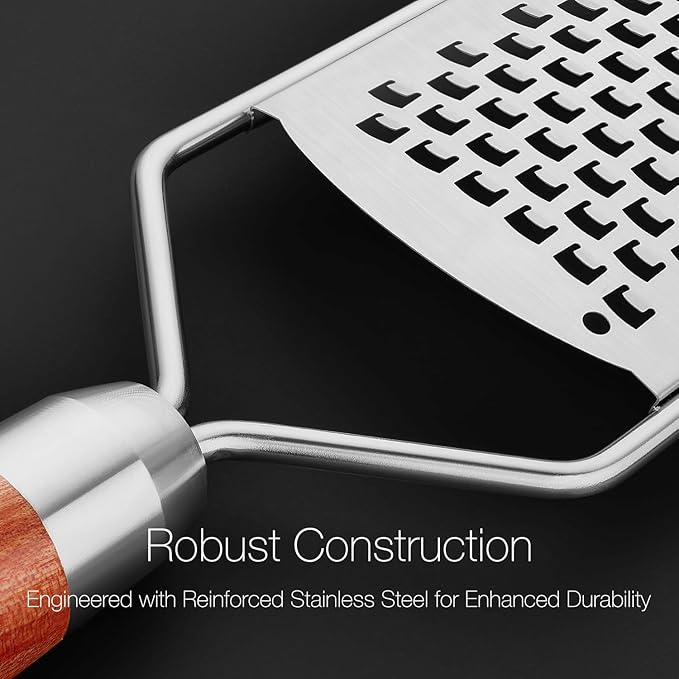 - Comfortable Solid Wood Handle: The elegant solid wood handle provides a comfortable and secure grip, allowing you to zest and grate with precision and control without slipping.